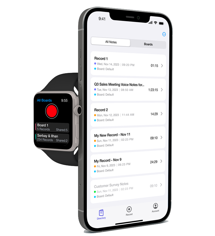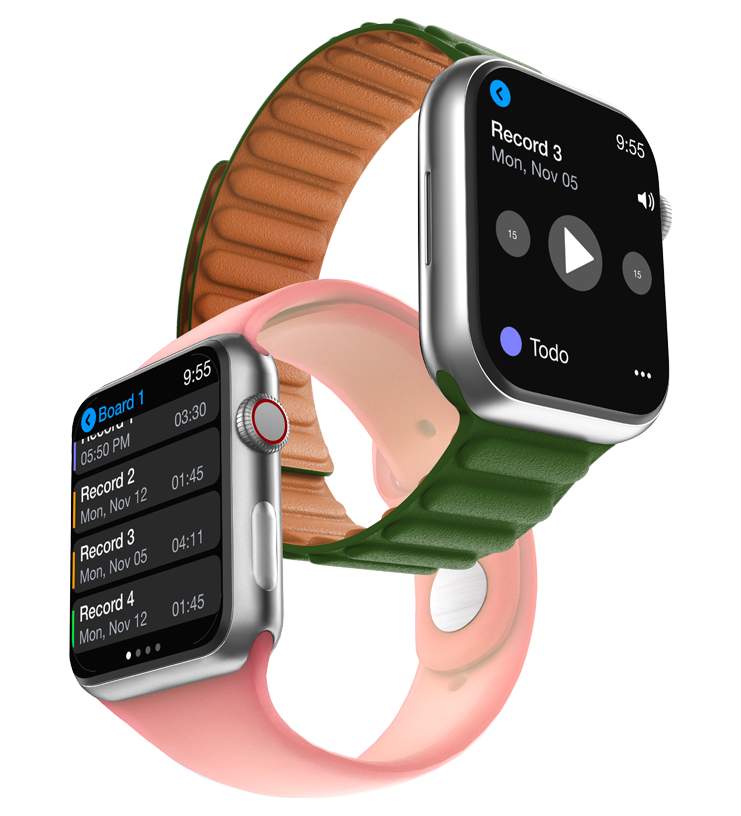 Record your notes with your Apple Watch or iPhone! After your record is finished, can synch them in MONI!